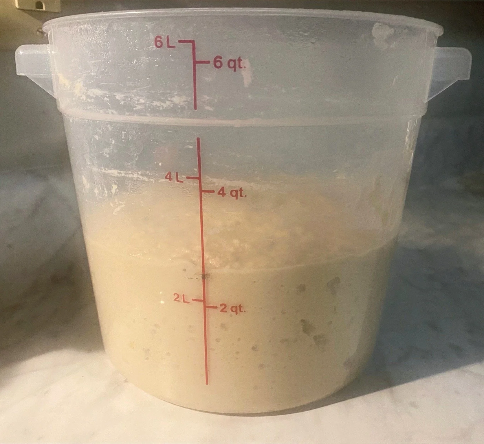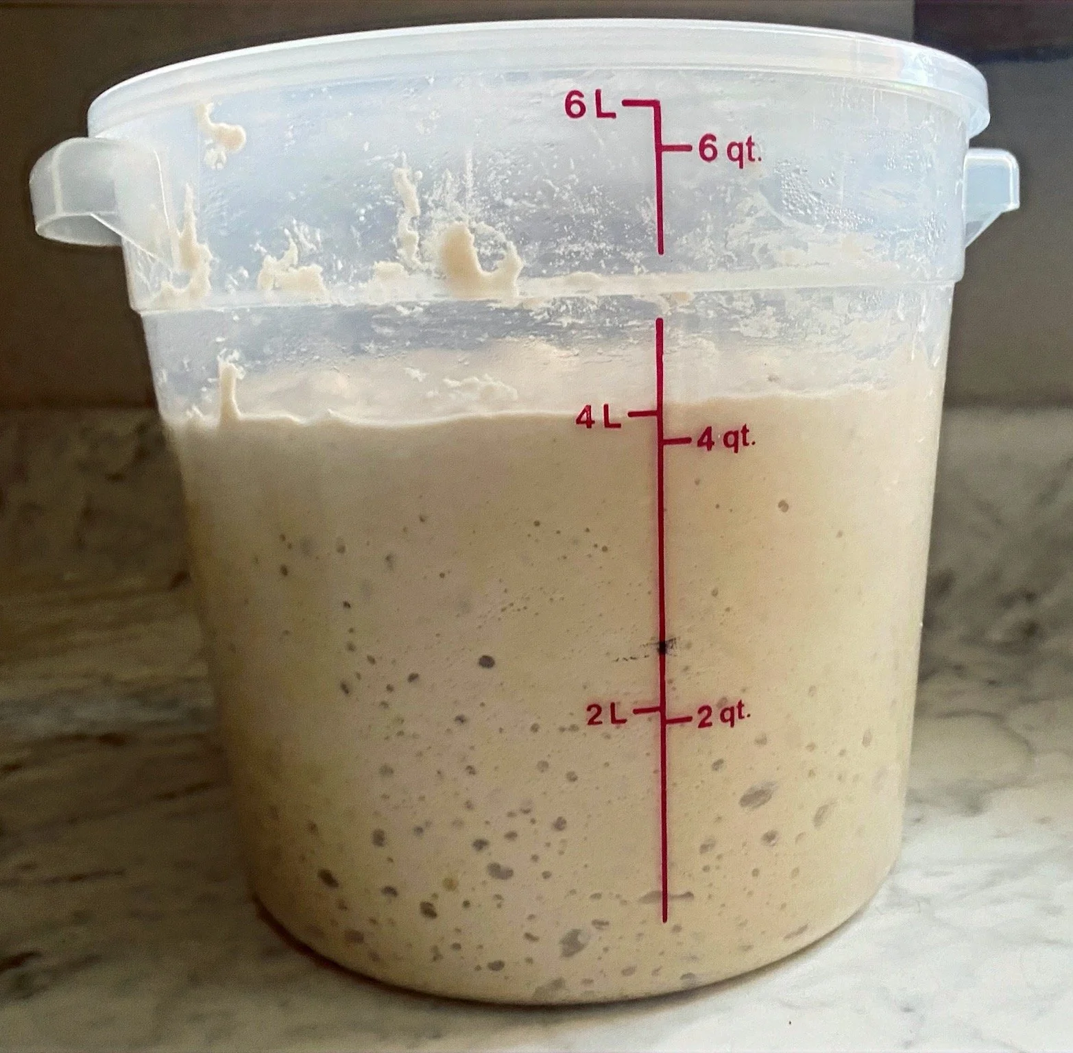 Put it in a clear container and add more flour and water (I do 50/50 by weight). Feed it a total of 100-200 grams. You can use any flour, or mix some together. Experimenting is encouraged.