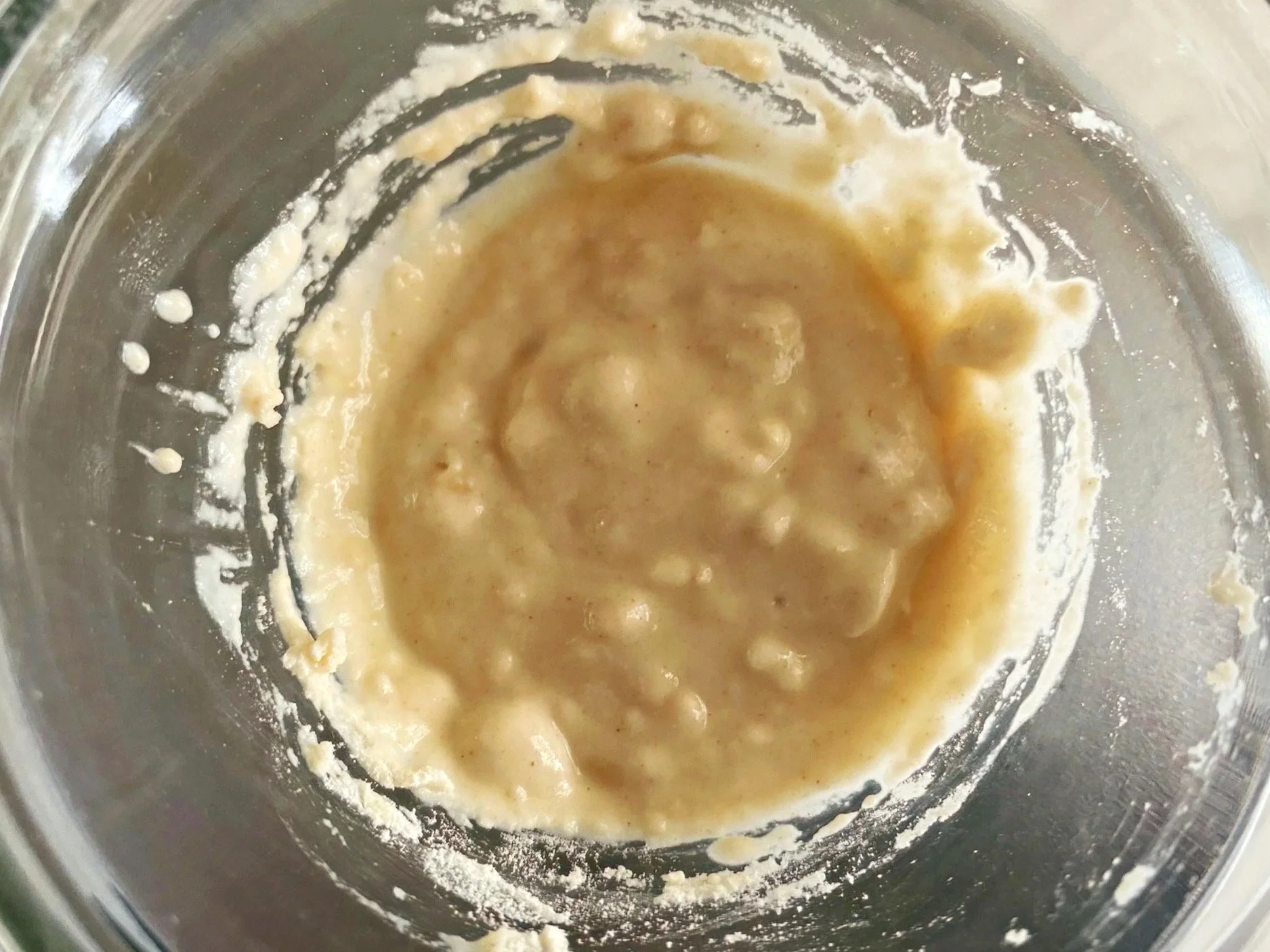 Weigh around 5g of dried starter, (more if you want, but that’s enough to work with and also save some for another time) and mix it with an equal amount of water. Use a kitchen scale.
